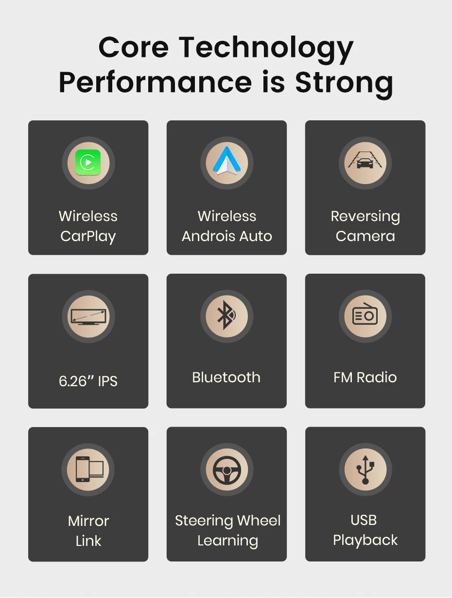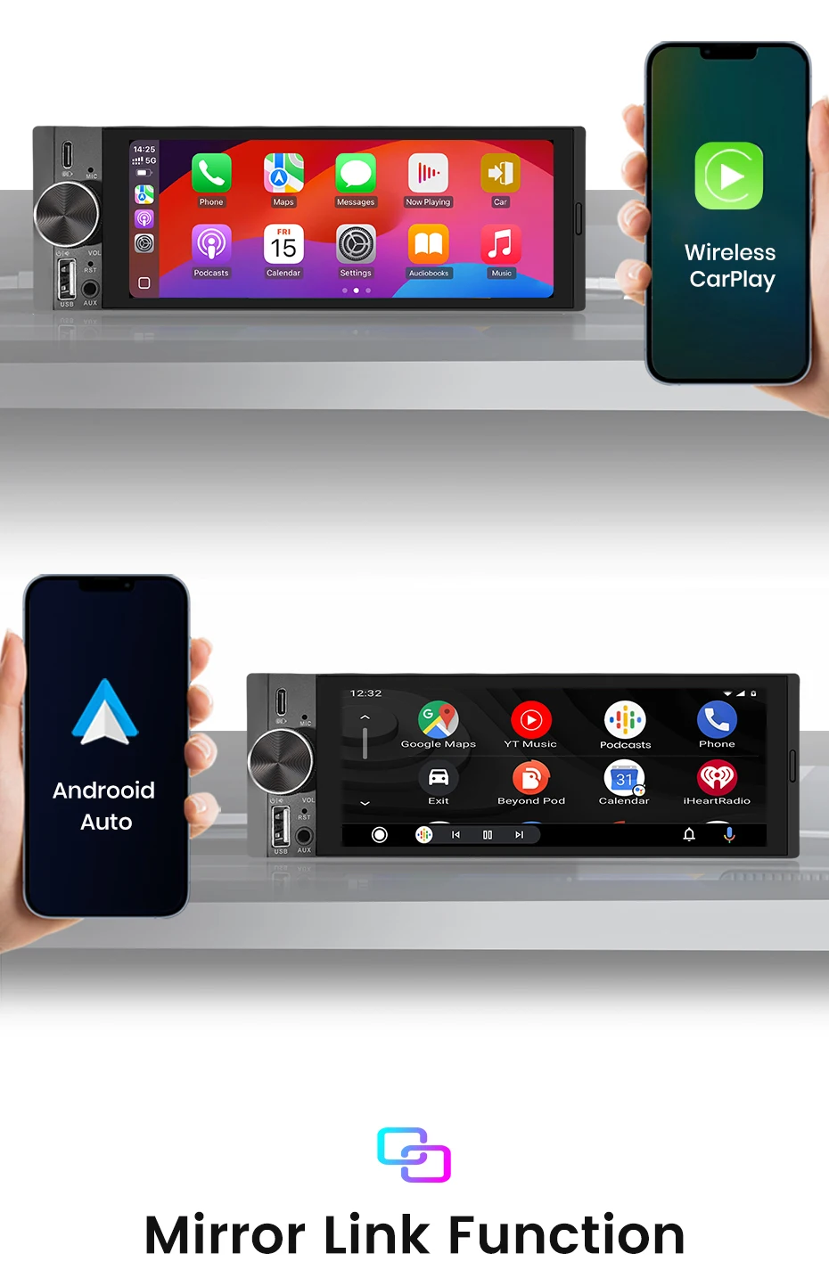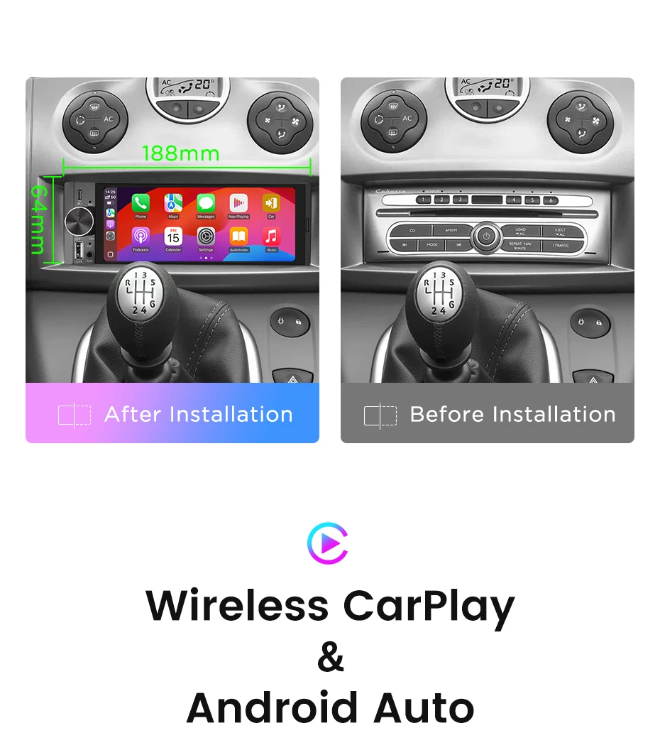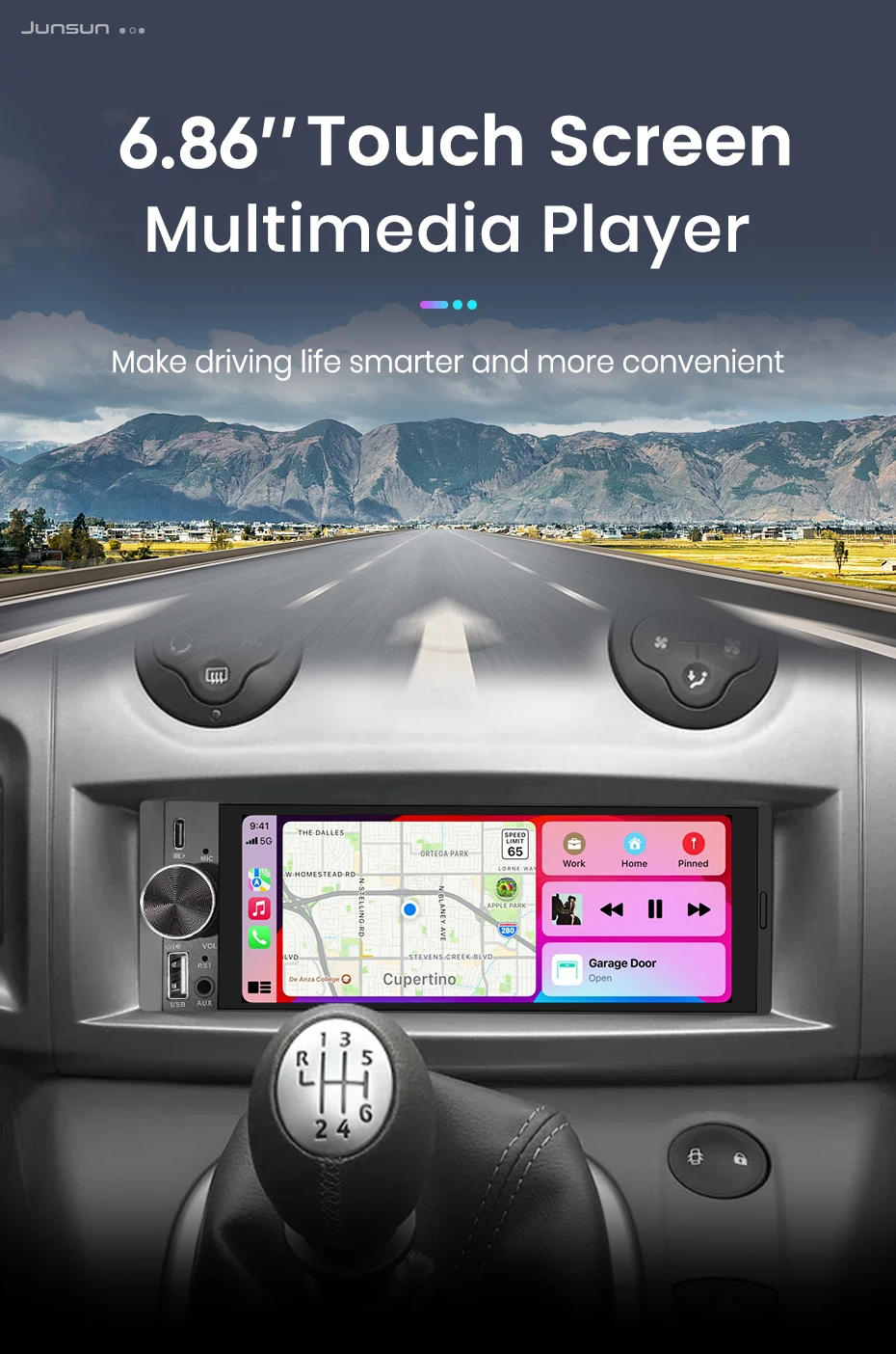 The Junsun radio supports Wireless CarPlay and Android Auto, allowing you to use smartphone functions and applications such as navigation, music, calls, and messaging during your journey. It provides a high-quality audio experience, enhancing the entertainment and convenience of your driving experience.