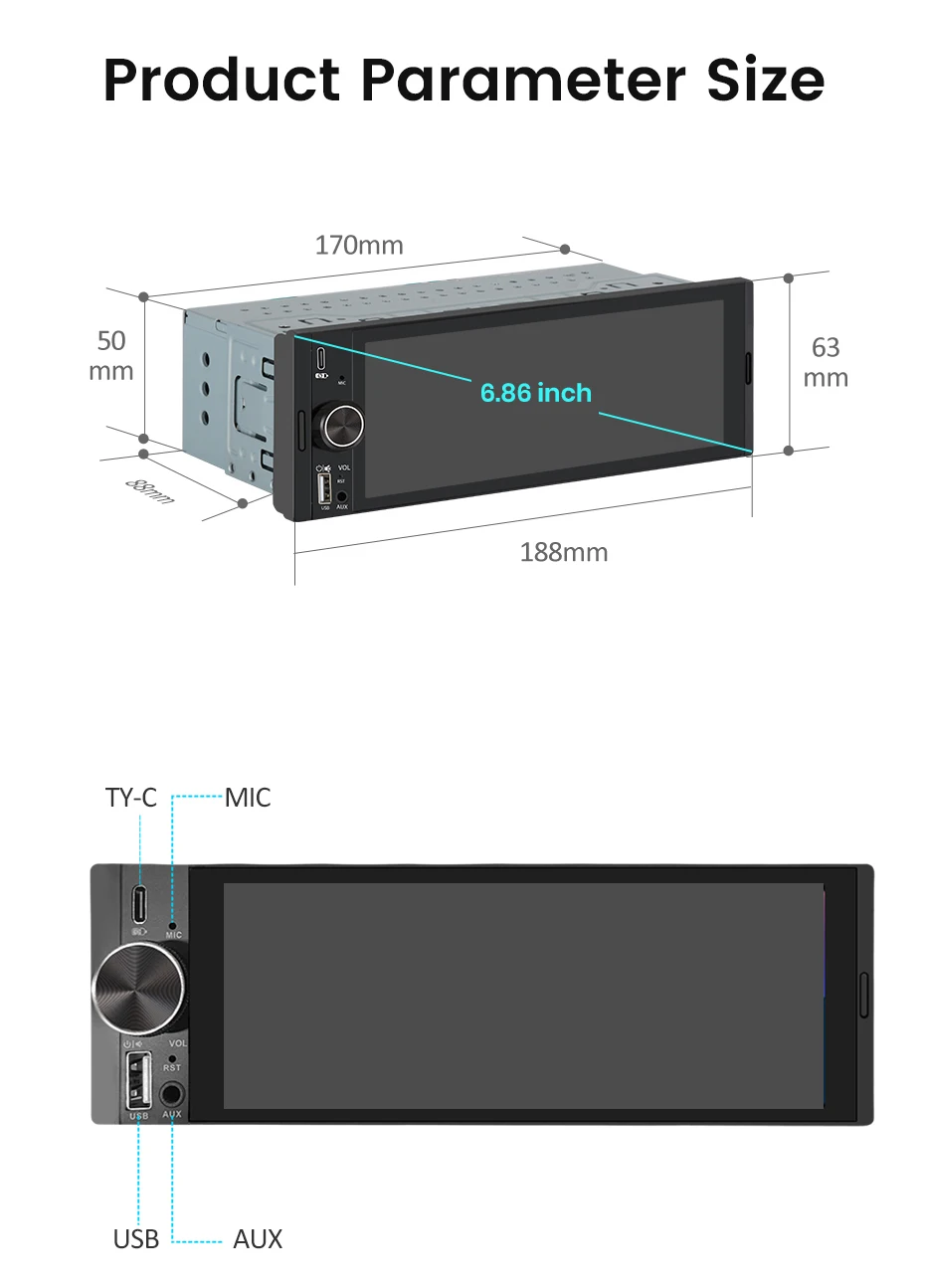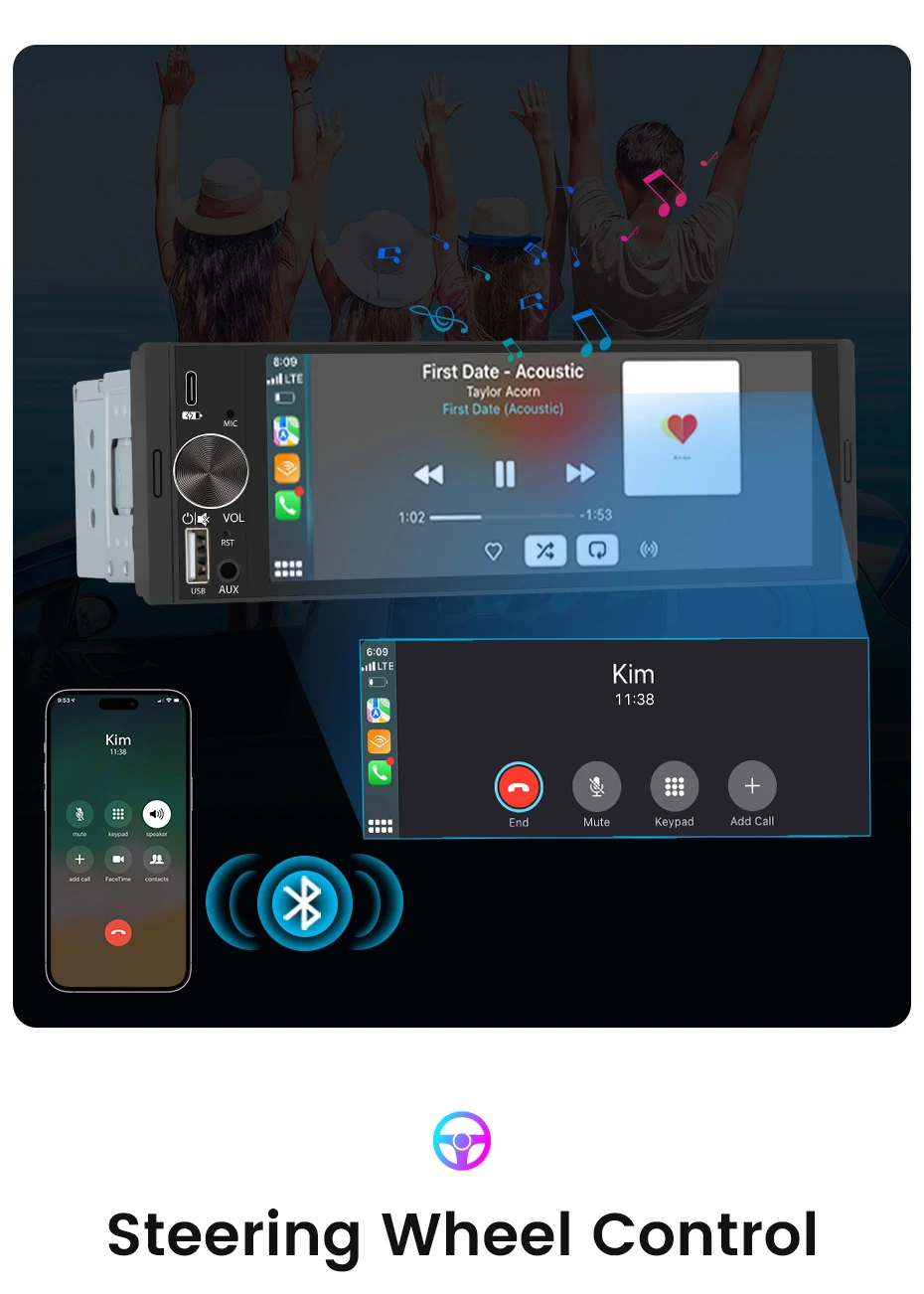 Special Features: MP3 players, CarPlay, Android auto, Reversing Input, Support steering wheel control