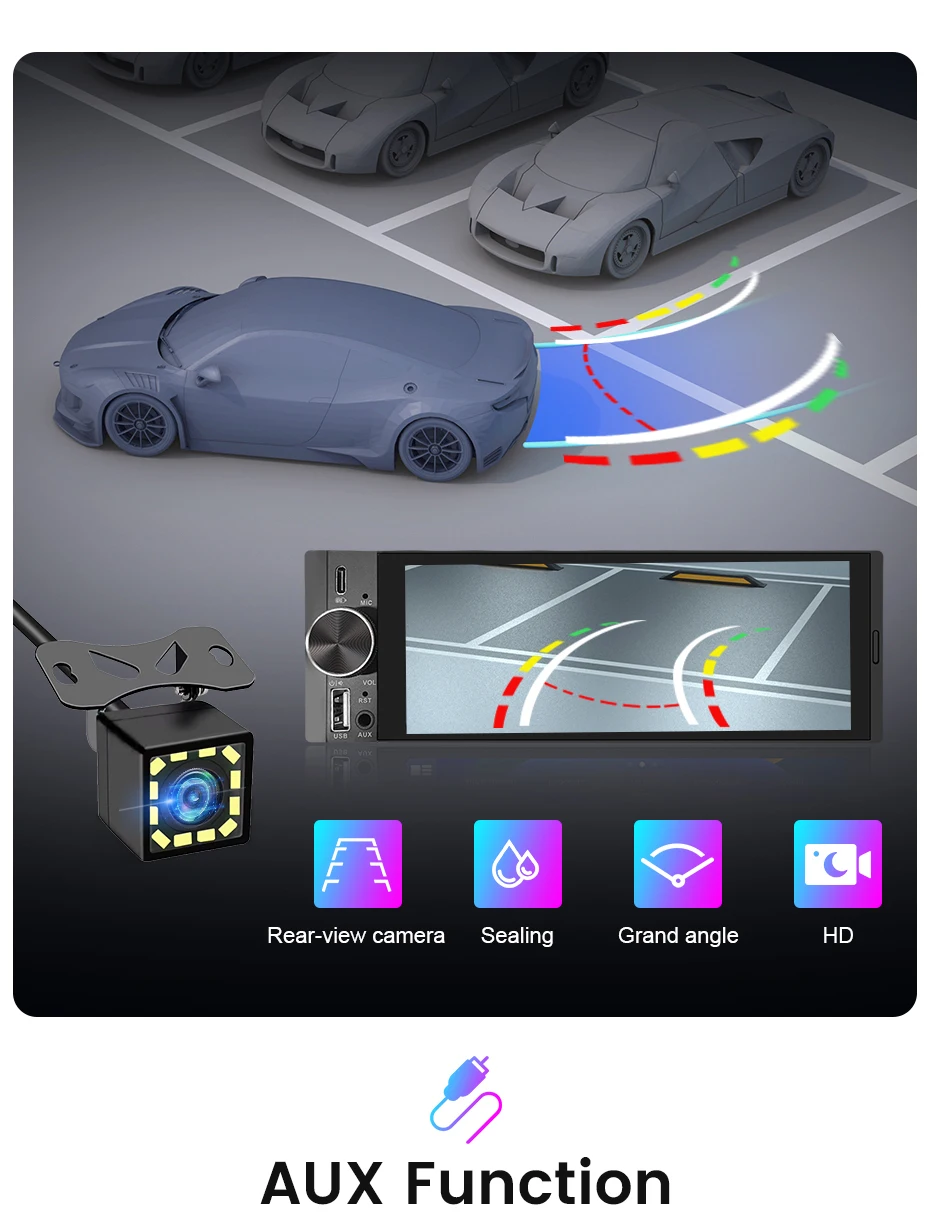 Front Aux audio input, Can use Audio equipment playing in the car, for example, mobile phones MP3. MP4 and MP5.
